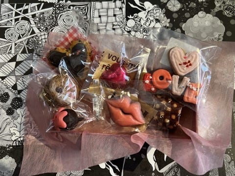 ★アーモンドハートチョコ…キャラメリゼしたカリっとアーモンドが入ったビターチョコ