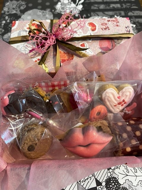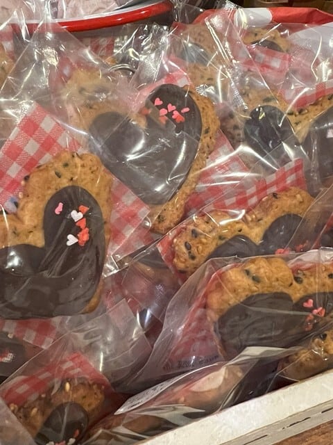 ★アイシングクッキー…さっくりしっとりの人気サブレクッキーをベースにかわいくお絵描きしたバレンタインバージョンのクッキー オリジナルレシピのアイシングは味も好評いただいております